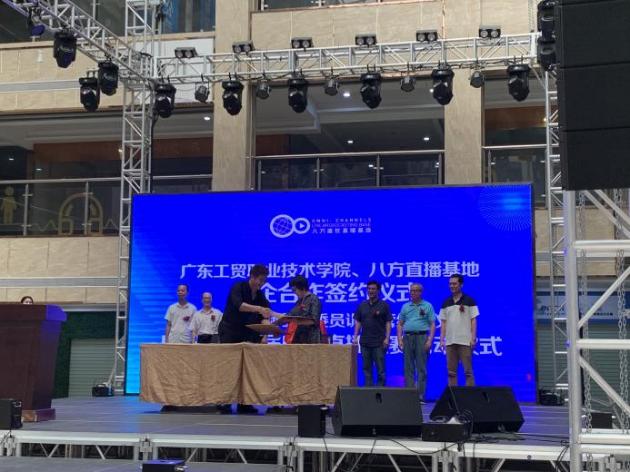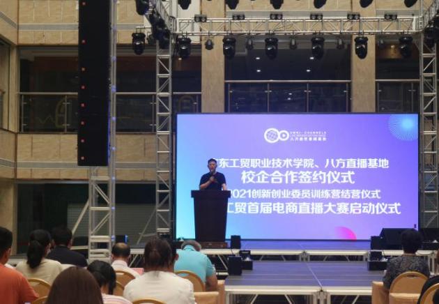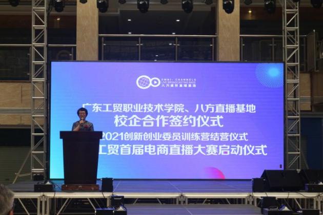 为不断完善我校创新创业教育体系,深化产教融化,加强校企合作,立足粤港澳大湾区,提升服务当地产业能力。2021年5月18日,我校与广州八方盛世投资控股有限公司在八方盛世电商直播基地举行了校企合作签约仪式。活动中,我校同时举行了广东工贸首届电商直播大赛启动仪式和第二期创新创业委员训练营结营仪式。