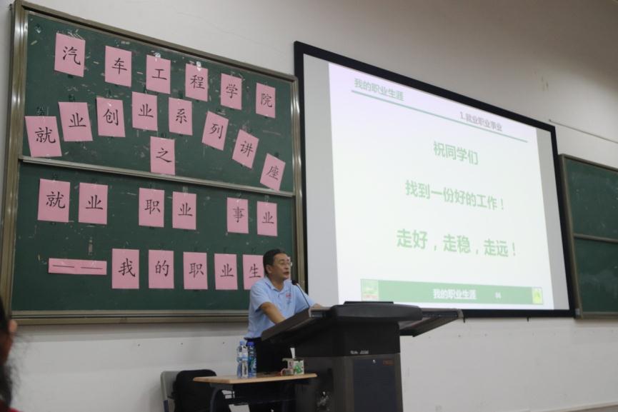 为学习贯彻习近平新时代中国特色社会主义思想和党的十九大精神,进一步激发学生创新创业热情,提高创新创业能力。2018年5月24日晚上,汽车工程学院特邀高级工程师潘梦鹞老师为我院2016级机电一体化及汽车营销与服务专业的同学开展了就业创业系列讲座之 “就业、职业、事业——我的职业生涯”。
