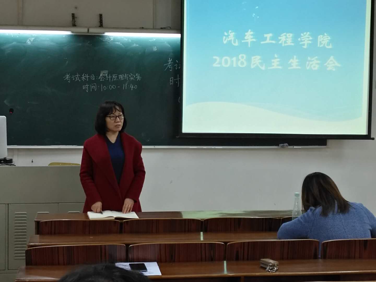 1月8日下午,汽车工程学院在学校西区综合楼407召开2018年民主生活会,主管校领导、学校党委委员、副校长赵红出席了会议并对学院党建工作进行指导。会议由汽车工程学院党总支书记彭卫东主持,全体教师参加了会议。