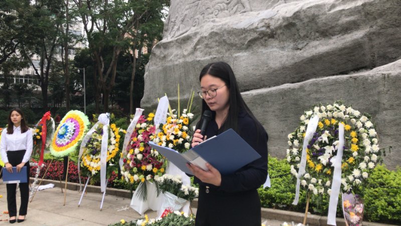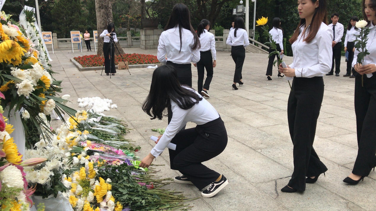 首先,叶婷钦同志向同志们介绍此次活动的意义以及广州起义烈士陵园的历史背景和革命烈士们的英雄事迹。随后,进行此次活动的第一项流程——奏唱国歌,紧接着是第二项流程——为广州起义壮烈牺牲的烈士们献上鲜花,表达对烈士们的思念和敬仰之情。