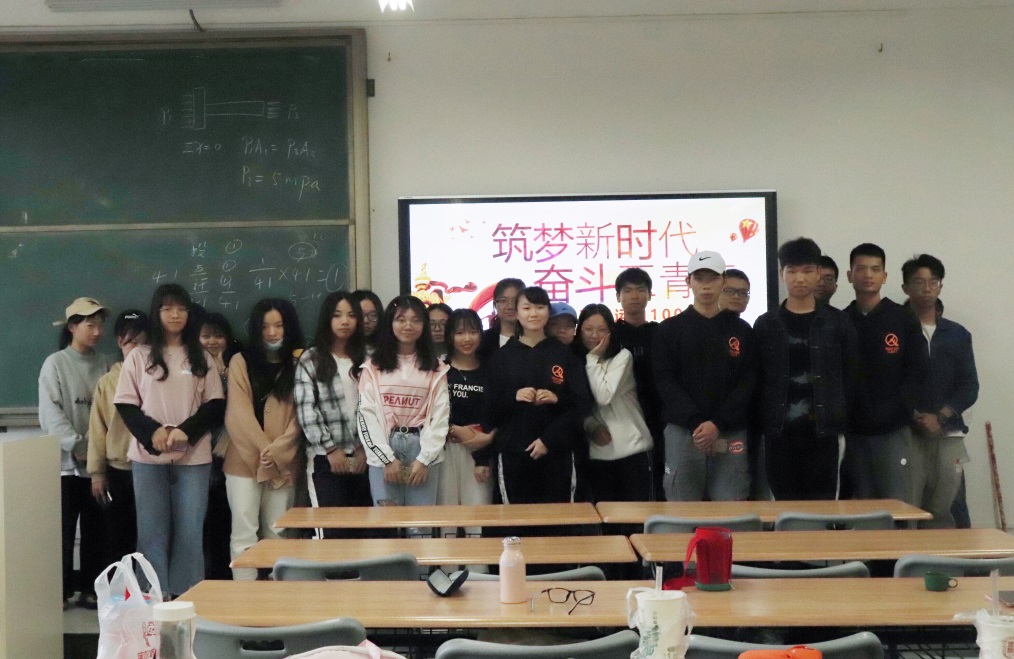 学院学生会、青协合照 学院学生会主席廖泽彬表示:“我们正处在中华民族发展的最好时期,作为新时代青年,我们应该牢记弘扬五四精神,以实现民族复兴为己任,坚定对中国特色社会主义的信心,要深刻认识五四精神的新时代意义,既要传承五四精神又要加强对五四精神的研究,始终牢记:为人民服务,为同学服务的宗旨。听党话,跟党走,让青春在不断奋斗和奉献之中焕发出最美丽的光彩。” 二、 筑梦新时代 奋斗正青春——班级团支部 为深入了解五四精神,学习习近平总书记在纪念五四运动100周年大会上发表的重要讲话,切实贯彻习近平总书记对新时代中国青年提出的六点要求,努力将五四精神融入到班级的血液中,2019年5月5日下午,18汽服2班于明德楼1区405开展“筑梦新时代 奋斗正青春” 纪念五四运动100周年专题学习会议。会议上,全体同学认真聆听习近平总书记讲话,深刻感受五四运动对中国社会进步、马克思理论传播、中国青年运动的重要推动作用。习近平总书记对青年提出的“树立远大理想、热爱伟大祖国、担当时代责任、练就过硬本领、锤炼品德修为”六点要求,为班级同学指明了努力的方向。