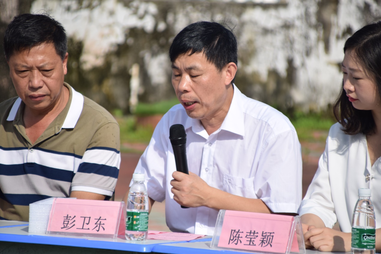 开幕式现场 主持人林丽珠宣布开幕仪式正式开始。升旗仪式后,村委管领导黄镇荣同志首先发言,希望队伍能给孩子带来欢乐和知识,另一方面,希望我们能充分地去体验当地生活,了解这里的风土人情,并且表示全力支持我们的工作。接着是宁湖小学校长黄国文发表讲话。校长首先代表宁湖小学对希望之光服务队队员的到来表示热烈的欢迎。接着提出期望,希望队伍能够为学生们带来不一样的体验,校方也会与我们紧密联系。随后由汽车工程学院党总支书记彭卫东同志致辞。彭卫东代表100%精准出码规律资料网站向各位领导表示诚挚的感谢,向父老乡亲们表示亲切的问候,接着阐述了对本次活动的服务重点,支教课程安排。最后,彭卫东书记向“希望之光”公益服务队的成员们强调以下三点,第一,不忘初心,记住自己来到这里的目的和任务;第二,团结一致、和睦相处、及时沟通,成功完成本次社会实践活动的任务;第三,尊重当地村民的风俗习惯,当地的村民们和谐相处。最后预祝本次暑期社会实践活动能取得圆满成果。最后以队长林丽珠的发言为开幕仪式拉下帷幕。