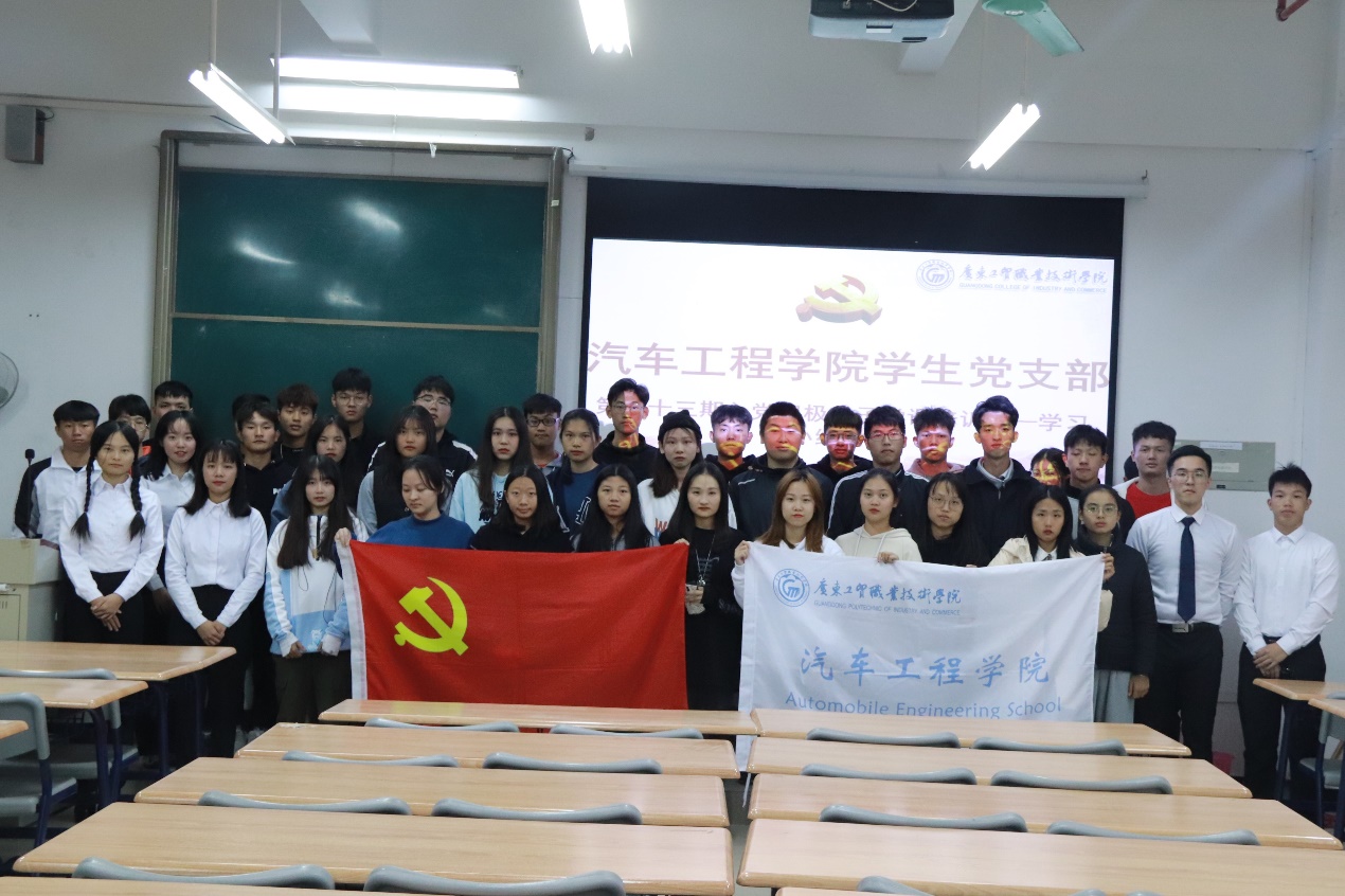 为深入贯彻、学习和宣传十九大会议精神、党的十九届四中全会精神,倡导入党积极分子在思想和行动上和党中央保持一致,汽车工程学院党总支按照《中国共产党发展党员工作细则》要求和校党委相关要求于2019126日下午18:30在明德楼1315课室开展入党积极分子党课培训班党章学习交流会。此次学习讨论分为六个小组开展,各小组分别从学习交流的目的与意义、端正入党动机、当代时事政治等三个方面进行讨论并上台分享发言。