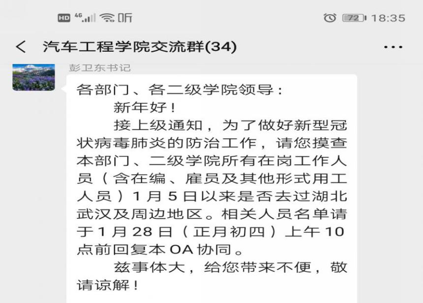 学院通过微信群等多渠道对全体师生进行全面排查