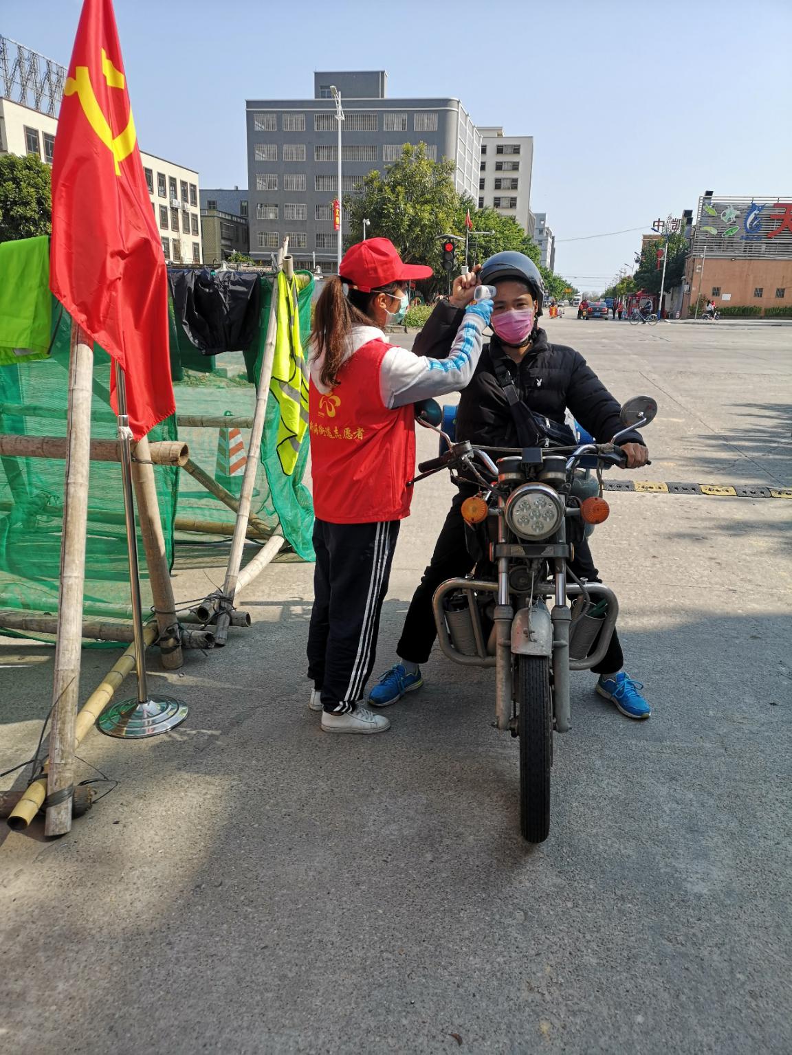 18级预备党员林丽珠在为路过的行人测体温 众志成城,彰显社会责任。面对疫情迅速蔓延的严峻形势,汽车工程学院师生上下一心,积极应对,践行社会责任,认真做好疫情防控相关工作,为这场疫情防控阻击战贡献自己的力量,我们定能战胜疫情,迎来春暖花开。
