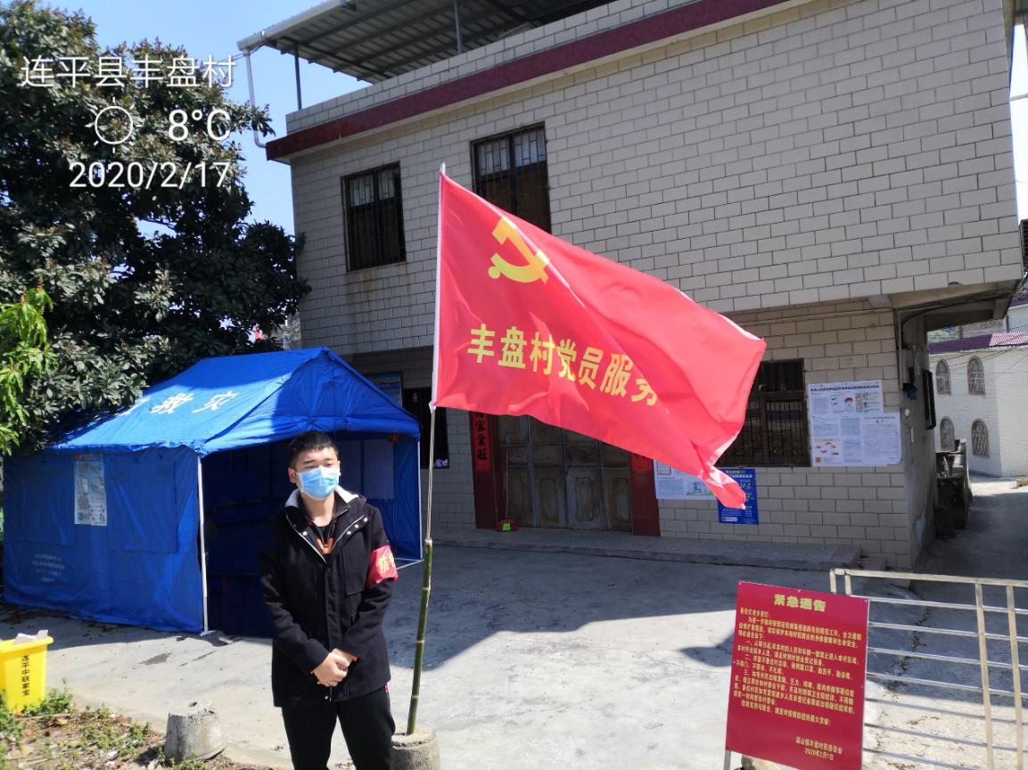 汽车学院18级预备党员谢荣成在工作岗位上 广东省汕头市龙湖区新海街道的汽车学院18级预备党员林丽珠,加入到了广东省汕头市龙湖区新海街道西南村的防疫抗疫大军当中。她说道:“2020年的春节是一个不平凡的春节。新型冠状病毒引发的肺炎自武汉流向了全国各地,疫情来势凶猛,斗争刻不容缓!作为一名当代大学生,一名预备共产党员,我有义务守卫我的家乡。中国加油!武汉加油!”