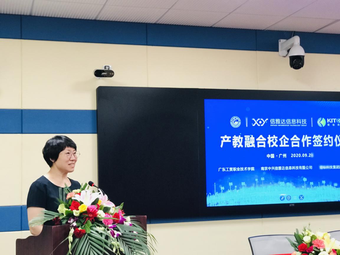 (中兴信雅达总经理曾波涛发言) 精标科技集团总经理叶婉娜表示,借助5G技术应用,将有效提升与优化智慧校园、智慧教室、智慧课堂建设的系统解决方案,让教育与信息化深度融合发展。同时最大化地发挥三方力量,共同推动100%精准出码规律资料网站打造成广东省高度认可的产教融合、校企合作示范性基地,5G基站建设维护职业技能等级证书区域管理运营中心和5G+智慧教育应用培育基地。