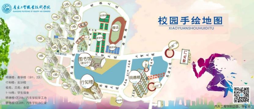 校园Q版手绘地图 为做好迎新工作,落实服务细节,汽车工程学院组织招募志愿者,召开迎新服务专项工作培训会;组织学生挂钩党员、学生干部等参与迎新服务工作。迎新当天协助新生运送行李、分发钥匙及指引完成报到流程等。报到当天身穿绿色马甲的志愿者忙碌的身影,成为迎新工作一道亮丽的风景线。