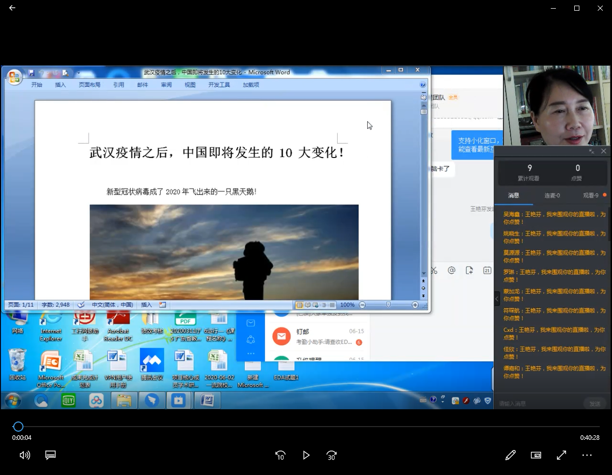 6月20日下午,汽车工程学院院长王艳芬以“新冠疫情之后,新青年如何应对中国即将发生的10大变化”为题目,通过网络平台为19电子信息3班、17电子信息2班两个班的同学讲述了一堂生动有趣的大学新生思想政治教育第一课。 上课现场 王艳芬提出“新型冠状病毒成了2020年飞出来的一只黑天鹅!”“哪里越有危险,哪里就越有机会!”,勉励同学们提高防疫抗疫信心,主动学习各种知识,实现自我成长。 接着,王艳芬院长分享了“线上购物”对”线下购物“的加速替代等十大关系,指出当前的发展机遇,并向同学们提出了希望。她指出,“中华民族自古以来就是一个多灾多难的民族,也是一个不屈不挠的民族,每经历一次困难,就会坚强一次,成长一次,我们不仅没有被打趴,反而会变的更加强大。”我们要在危中找到“机”,实现弯道超车,把自己培养成社会有用的人才 (汽车工程学院 文、图/林伟康 审核/彭卫东 编辑/陈锐钊) |