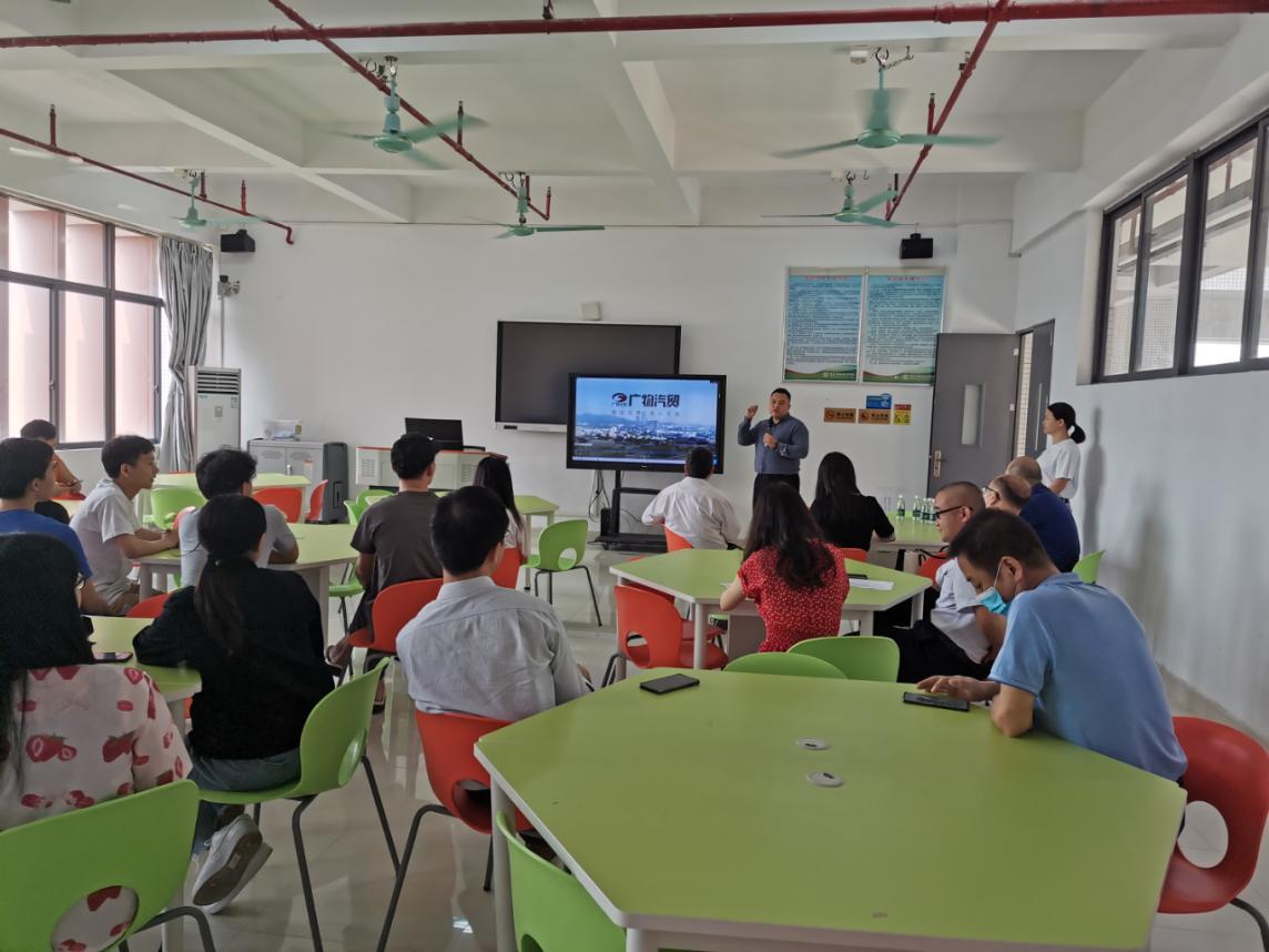 交流会现场 2. 落实丰田培训师参与学生培训工作。本次交流会明确,由企业提供专业培训师兼职参与汽车学院的学生实训工作,具体形式为:学生实训周期间,由企业提供专业培训师对学生进行贴合企业实际的实训指导。 3. 本科层次职业教育试点专业设置人才需求调研。结合育部《关于组织开展本科层次职业教育试点专业设置论证工作的通知》的相关要求,新能源汽车技术专业团队就“能解决复杂问题、进行复杂操作”的技术技能型复合人才需求及其岗位设置、专业知识要求、能力素质要求和薪资水平等信息对企业进行了详细的调研、咨询。 4. 为广物汽贸专利申请提供咨询服务与技术指导。根据企业需求,由潘梦鹞副院长带领的技术团队,结合自身实际及专利申请经验,对企业提出的专利申请需求给予了详尽、务实的指导。