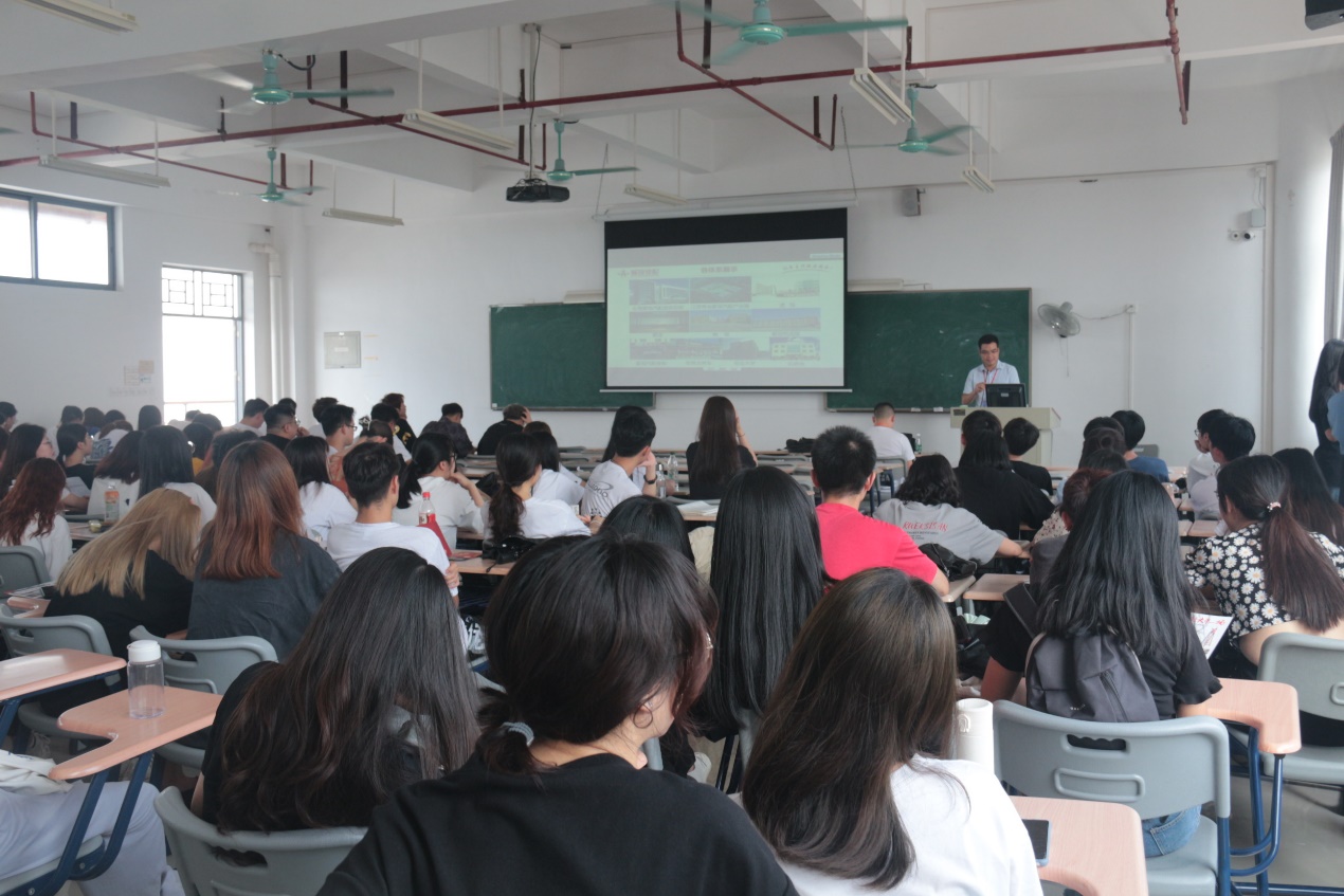 随后,箭冠汽配企业集团人力资源总监何安礼通过PPT展示就企业介绍、员工职业发展规划、团队成就、企业文化以及招聘岗位等方面向同学们进行详细讲解。