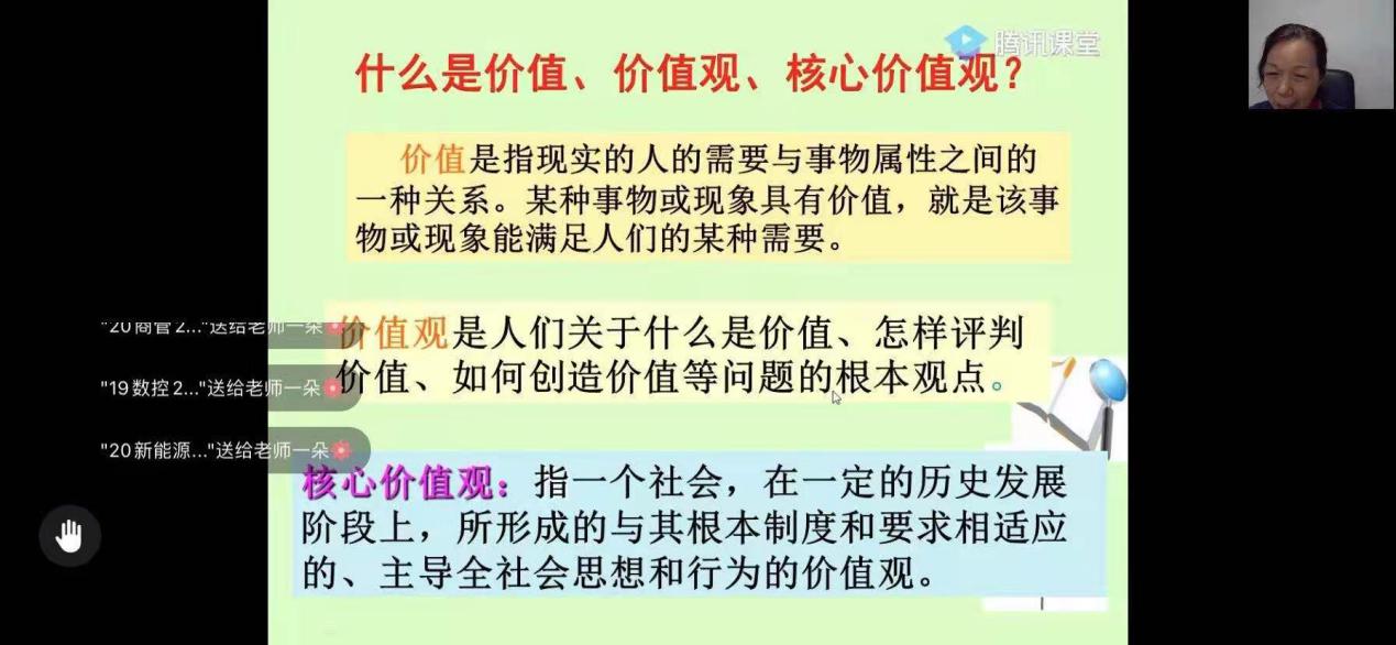 丁老师为同学们解释了什么是价值、价值观、社会主义核心价值观,从“学习贯彻习近平在党史学习教育动员大会上的讲话精神,向革命先烈致敬”、“青年为什么要培育和践行社会主义核心价值观”、“培育和践行社会主义核心价值观的时代背景”、“社会主义核心价值观的内涵“以及”如何践行社会主义核心价值观“等五个方面进行深入阐述,号召广大入党积极分子要做到胸怀祖国、胸怀人民,超越小我、融入大我,这样才能收获更丰盈的人生。