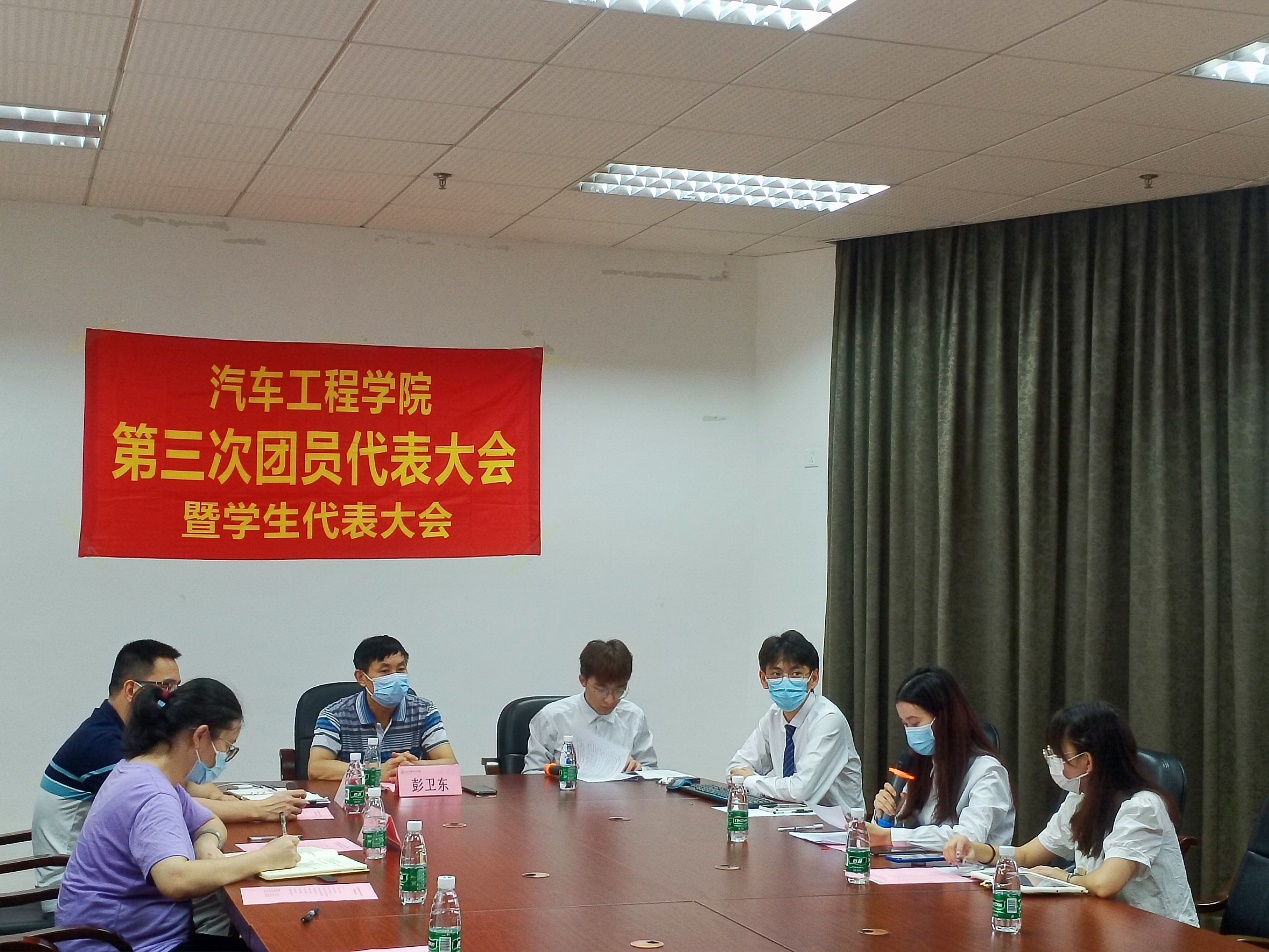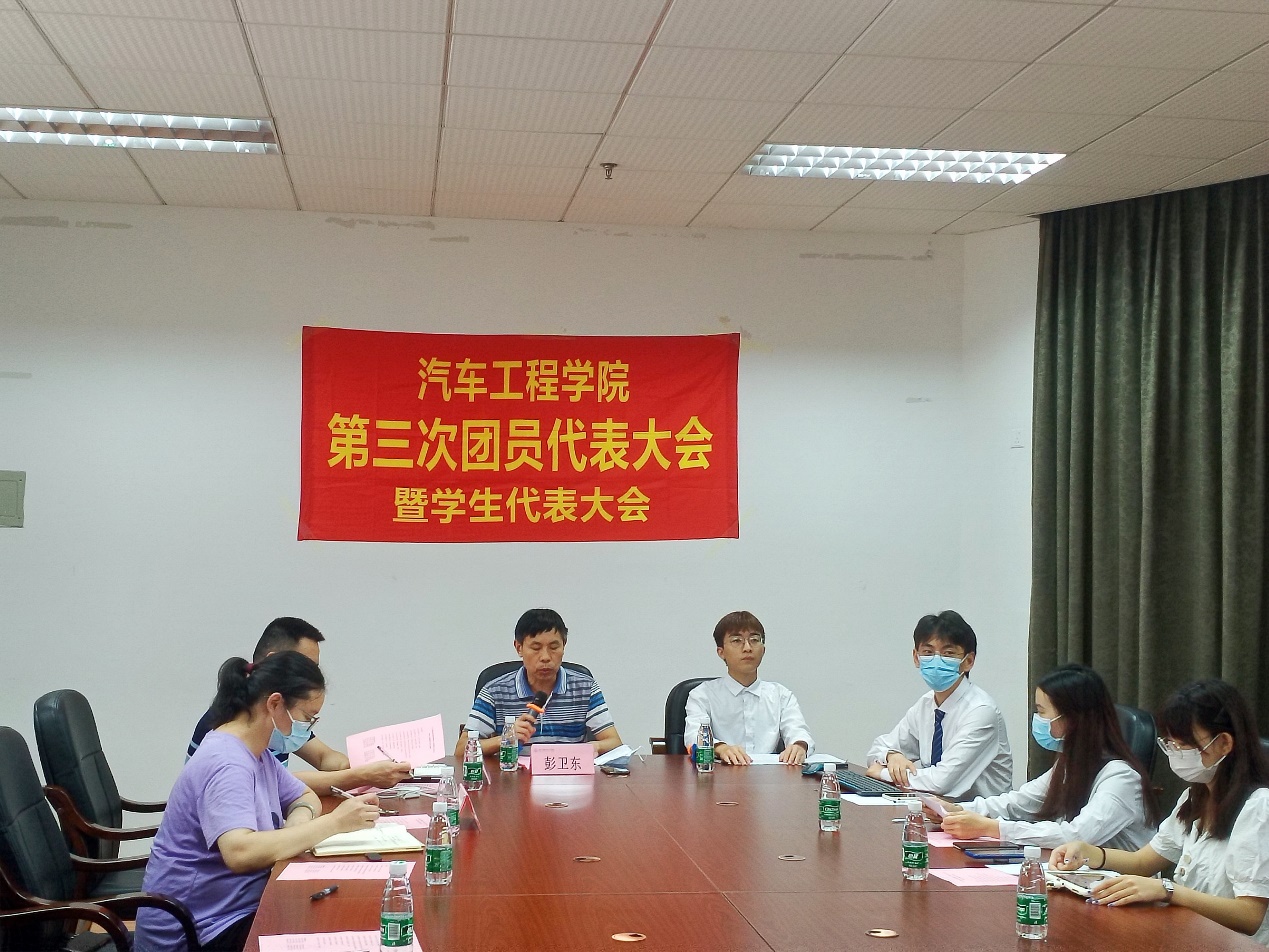 为全面总结我院团委、学生会工作的成绩和经验,明确在新形势下我院团委、学生会工作的任务和思路,以及全面贯彻落实党的十九大精神、全国教育大会精神和团的十八大精神,加强和规范我院团委和学生会组织工作,聚焦思想引领,坚持全心全意为学生服务,不断强化其自我教育、自我管理、自我服务、自我监督职能。6月24日下午,汽车工程学院第三次团员代表大会暨学生代表大会在腾讯会议线上顺利召开。出席本次“双代会”的领导嘉宾和学生代表有汽车工程学院党总支书记彭卫东、团委书记蔡少德、辅导员刘彩云、团委学生副书记曹凯泓、学生会执行主席吴梁梅、学术科技部部长黄英敏、生活部部长许德雄,以及“双代会”代表实时在线。会议由曹凯泓主持。
