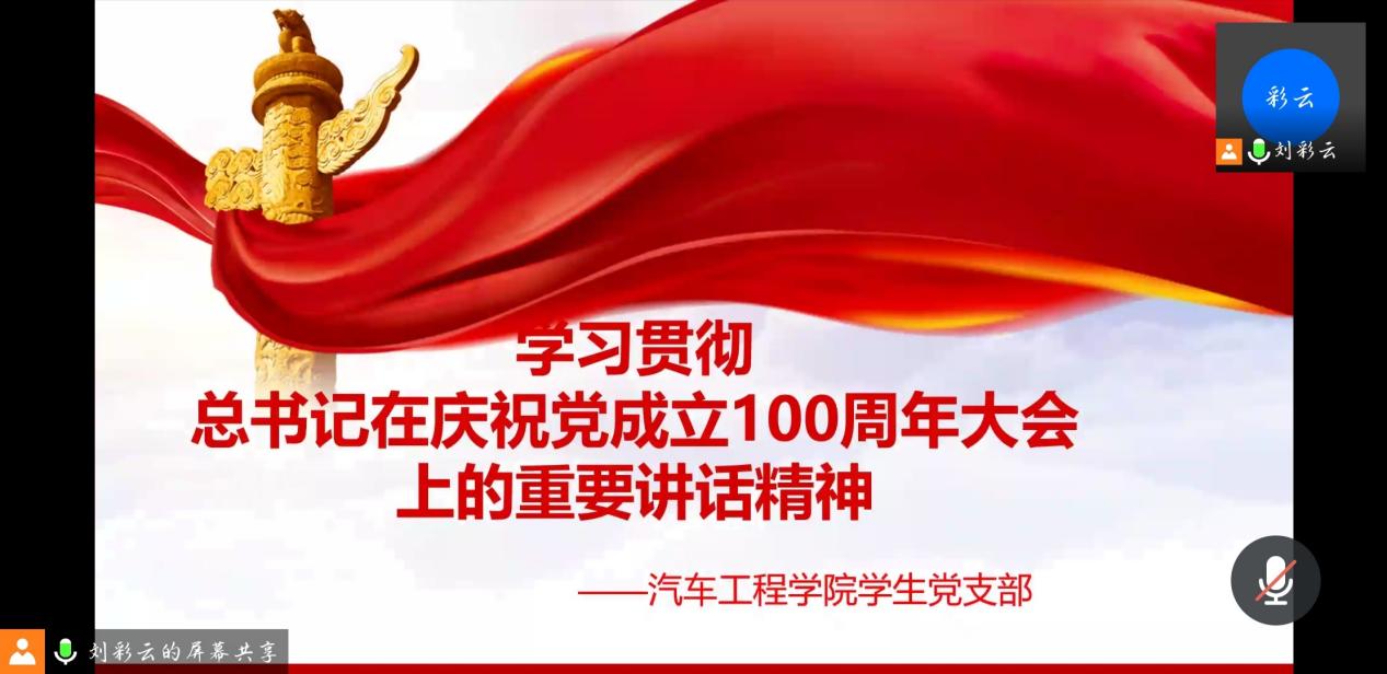 为学习宣传贯彻习近平总书记“七一”重要讲话精神,推动形成习近平总书记重要讲话、悟总书记重要思想的热潮,720日,汽车工程学院学生党支部在线上开展了党史学习微课堂之暑期专题学习班第一次专题学习。此次学习由学生党支部书记刘彩云主持,与会人员为支部全体党员。
