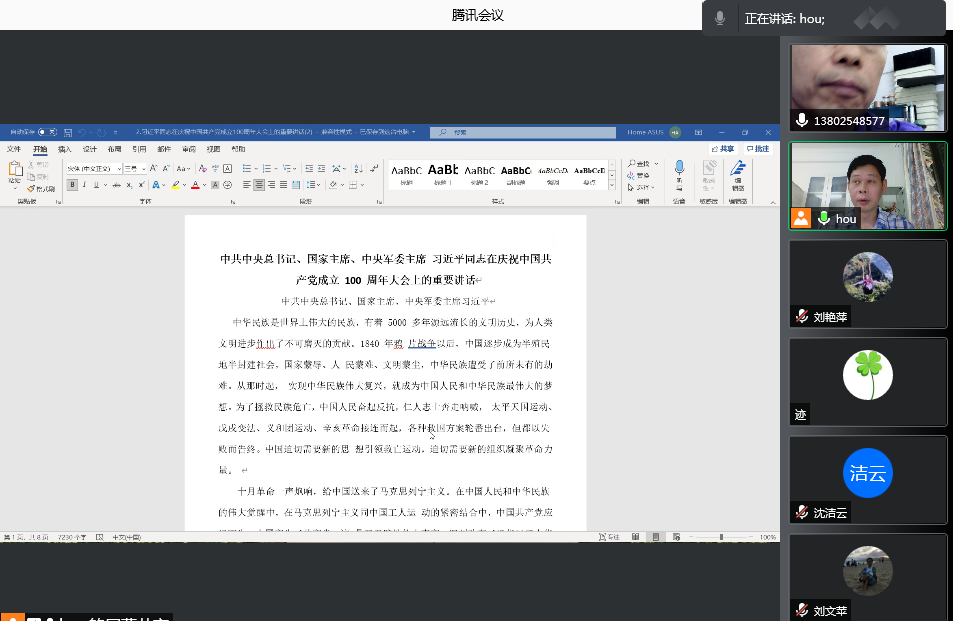 会上,首先由侯益坤同志带领大家学习了习近平总书记在庆祝中国共产党成立100周年大会上的重要讲话