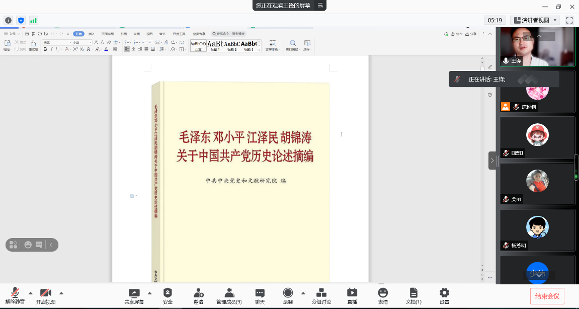 王锋分享“毛泽东、邓小平、江泽民、胡锦涛关于中国共产党历史论述摘编”