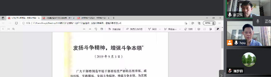 彭卫东同志带领大家学习《习近平谈治国理政:发扬斗争精神,增强斗争本领》