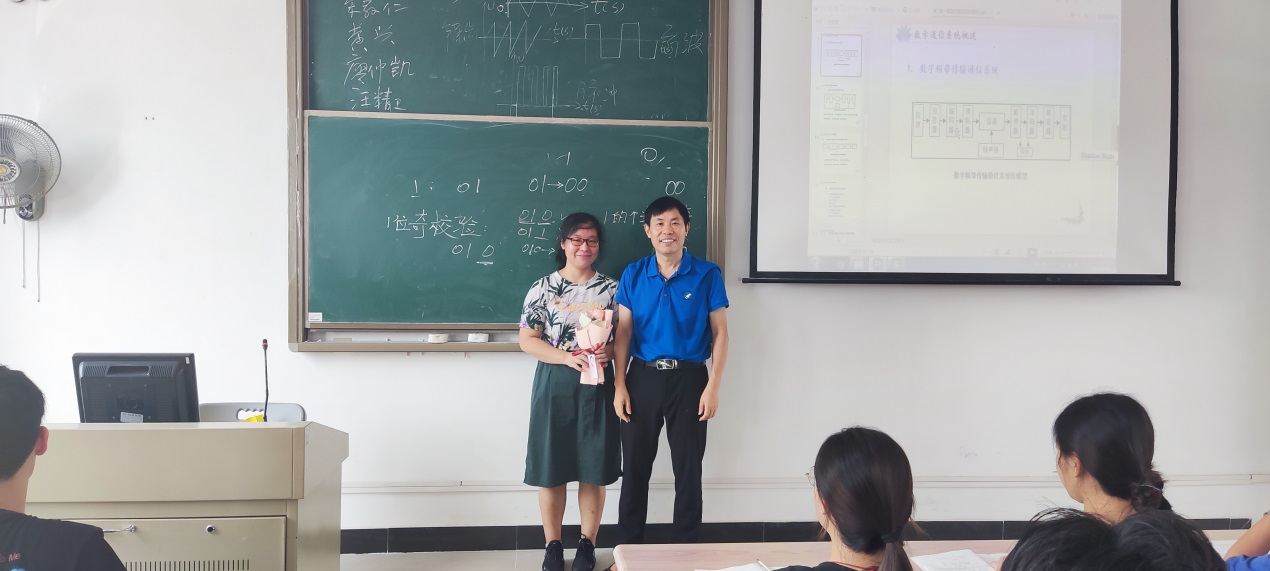 汽车学院副院长潘梦鹞为先进教师颁奖 本次活动以“深入教学、全员参与”为特色,学院领导分成三个小组到教学第一线慰问教师,为在校教师送去鲜花,并号召在场全体师生为教师送上节日的问候;在教学一线对先进教师进行表彰,引导全体师生以先进教师为学习标杆,学习先进,力争上游。在主持人的引导下,全体师生共同喊出响亮的祝福:教师节快乐。在热烈的掌声中,教室里洋溢着节日的氛围。