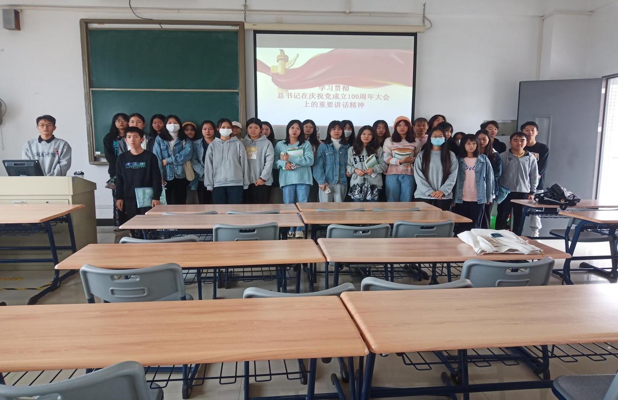为深入学习贯彻习近平新时代中国特色社会主义思想和呼应党内开展全党学习“党史一百年”的重大决策,学生宣讲团成员杨海山于10月22日下午3点在明德楼1区708带领大家一起学习了习近平总书记在庆祝中国共产党成立一百周年大会上的重要讲话以及五四精神,20汽服4班全体学生参加了本次宣讲会。