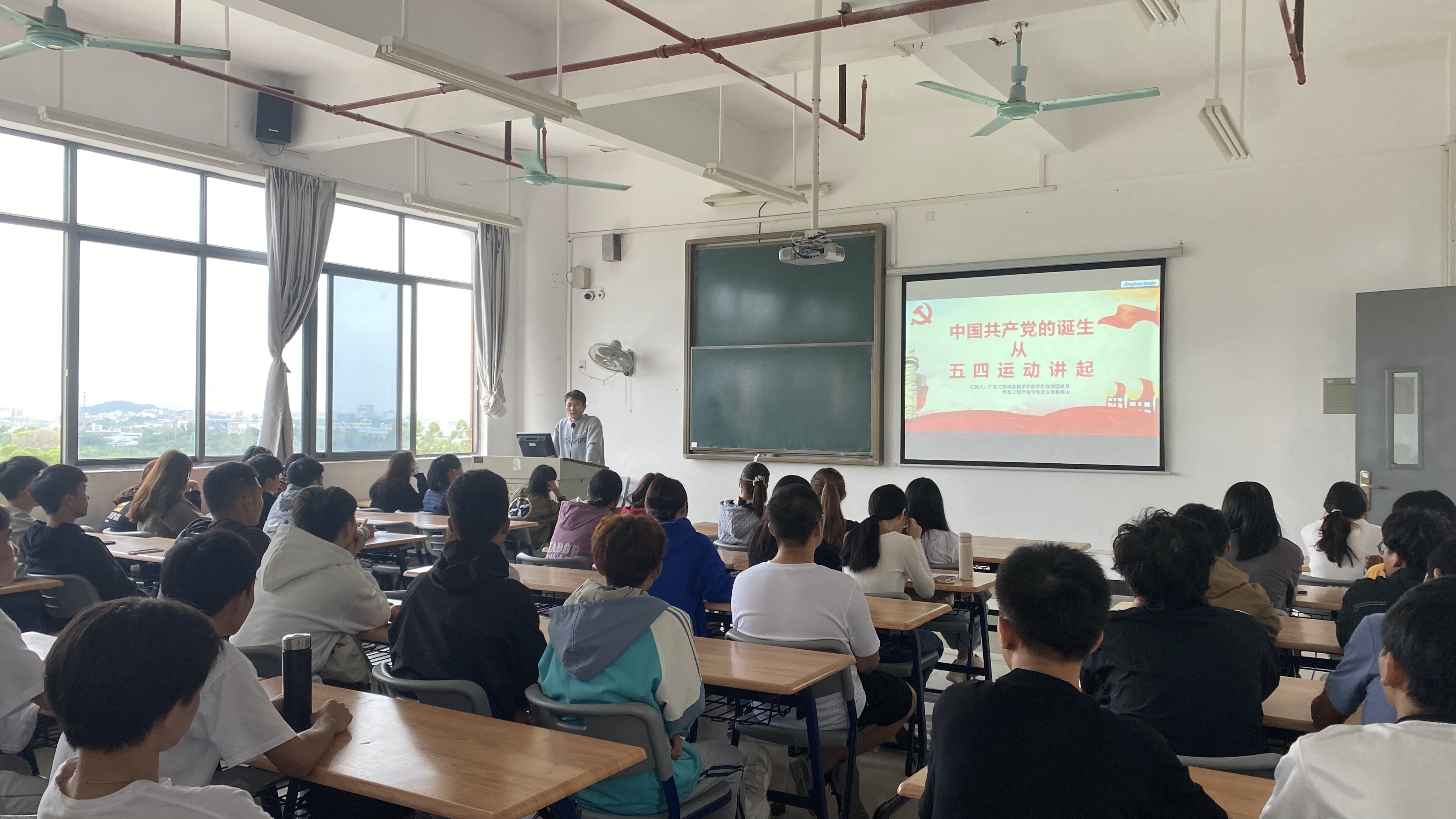 宣讲现场 其次,杨海山同志带领同学们一起学习了五四运动和中国共产党诞生这段历史。五四运动是孕育了以爱国、进步、民主、科学为主要内容的伟大五四精神,其核心是爱国主义精神。爱国主义是我们民族精神的核心,是中华民族团结奋斗、自强不息的精神纽带。爱国主义自古以来就流淌在中华民族血脉之中,去不掉,打不破,灭不了,是中国人民和中华民族维护民族独立和民族尊严的强大精神动力。对每一个中国人来说,爱国是本分,也是职责,是心之所系、情之所归。对新时代中国青年来说,热爱祖国是立身之本、成才之基。当代中国,爱国主义的本质就是坚持爱国和爱党、爱社会主义高度统一。