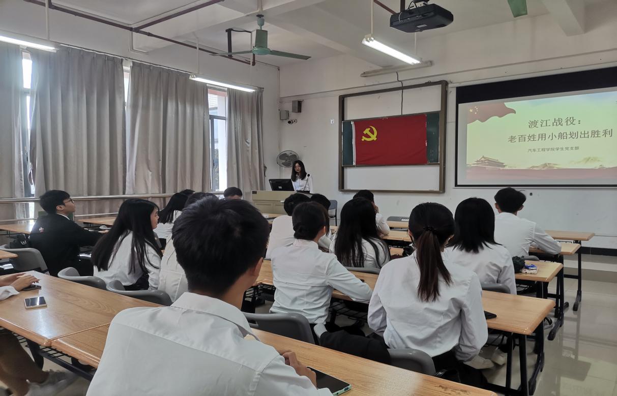 为了从党史中解读我们党的初心,增加践行初心使命的自觉,以及激发每位党员的崇仰之情和恭敬之心,汽车工程学院学生党支部于2021年11月18日下午在明德楼1-312开展党史学习微课堂之渡江战役——老百姓用小船划出胜利,进一步加深学生党员党史教育,激励他们不忘初心、牢记使命,以史鉴今,从历史中汲取智慧和力量。此次学习会由李伟璇主持,与会人员为支部全体在校党员。