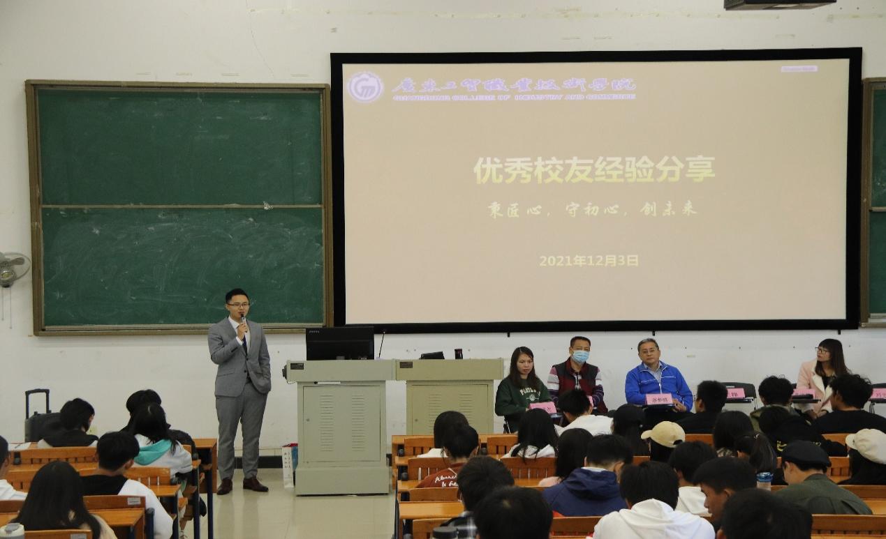 为培养汽服专业高素质的技能人才,发挥优秀校友的榜样示范作用,12月3日上午10点20分,汽车工程学院在明德楼2区104教室召开了学院校友座谈会暨汽服专业技能提升讲座,邀请出席的校友嘉宾为汽车工程学院2014届汽服专业毕业生、广州春源红旗汽车销售服务有限公司销售顾问朱建英及2020届汽服专业毕业生、广州中升凌志汽车销售服务有限公司销售顾问冯文棋。汽车工程学院出席本次访谈会的领导老师有党总支书记彭卫东、副院长潘梦鹞、新能源汽车技术系主任王锋老师、专业带头人郇锐铁老师、专任教师黄美红、吕美丽出席,由辅导员陈莹颖主持,21级汽车技术服务与营销专业全体学生参加。