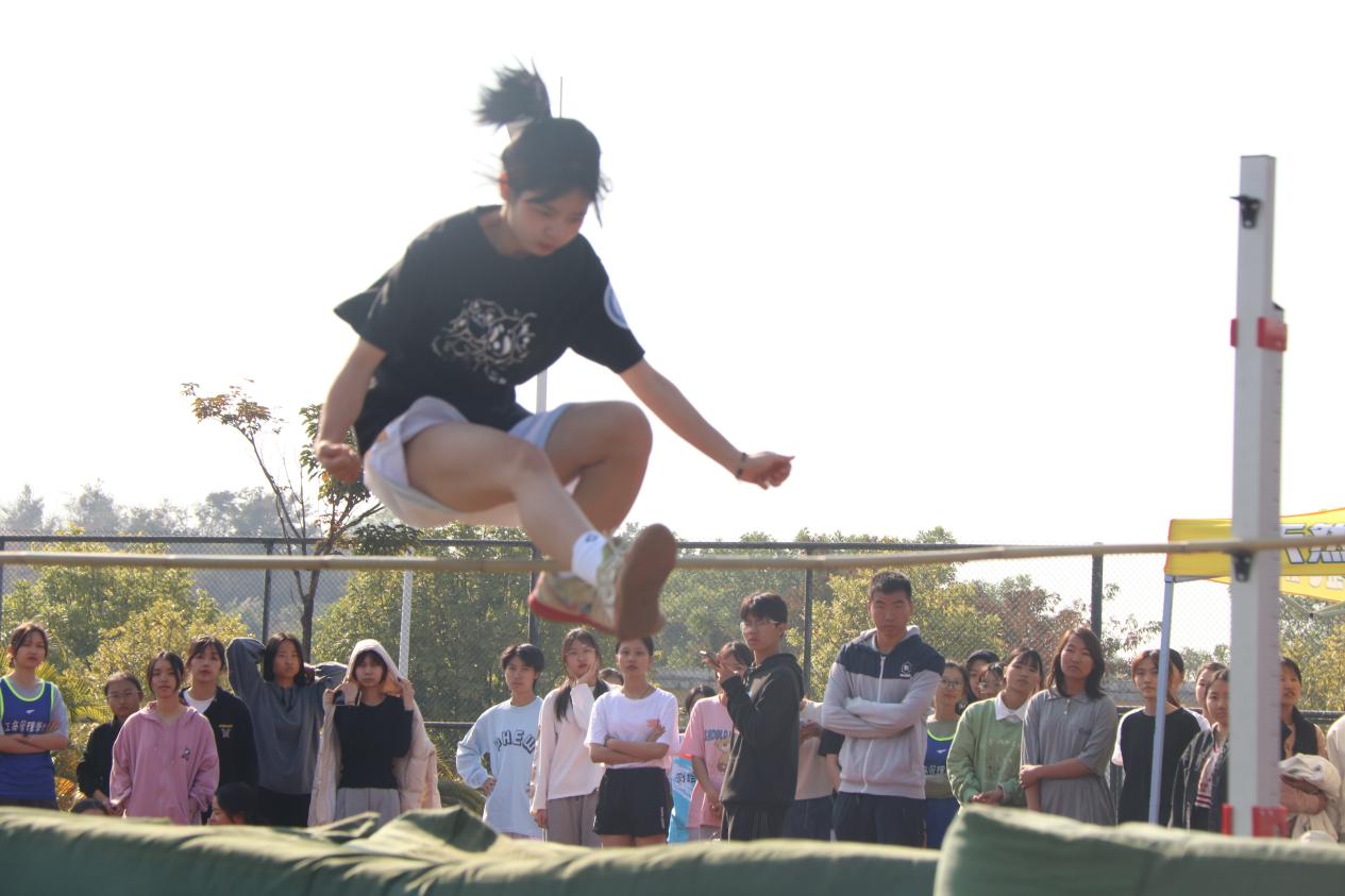 国旗护卫队 在两天的比赛场上,汽车工程学院的运动健儿们龙腾虎跃、奋力争先,不管是个人赛还是团体赛,他们都全力以赴,绝不让胜利从自己的手中溜走。赛场上飞奔的身影显示出惊人的速度,双手摆动着青春,双腿凝聚着力量,与空气磨擦出力与美的火花;跳远健将离弦箭似的助跑再起跳,落地的瞬间便形成了最美的弧线;跳高赛场上,他们腾空跳跃,掠过横杆;铅球比赛中,运动员手里紧握沉重的铅球,汇集全身的力量,奋力一掷,飞向他们的目的地。