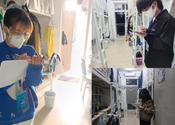 为进一步加强汽车工程学院宿舍文明与思想建设,规范学生的行为,培养学生优良作风和文明行为习惯,营造安全、整洁、优雅的宿舍环境,持续引导学生养成讲文明、讲卫生、比风尚的良好氛围。本学期起,汽车工程学院在全院范围内开展了全面彻底的宿舍内务大整顿工作。 本次大整顿共分为三轮。第一轮为院团委学生会实践部和各班生活委员组成宿舍检查小组,根据《学生手册》内宿舍内务管理规定,结合疫情常态化管理的各项要求,逐层、逐个进入宿舍检查,包括地面、墙面、床铺、门窗、阳台等内务卫生,以及严禁使用大功率电器、严禁宿舍内饲养动物等宿舍秩序及安全,对学院近400间宿舍做到“一个一个过”。