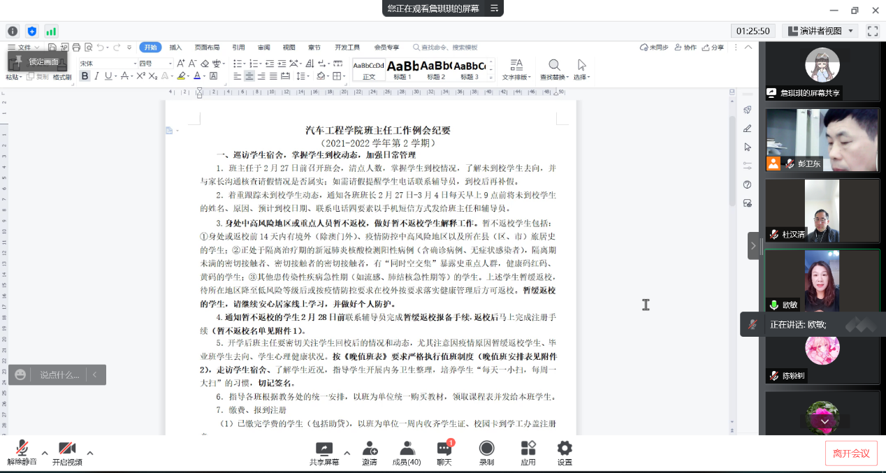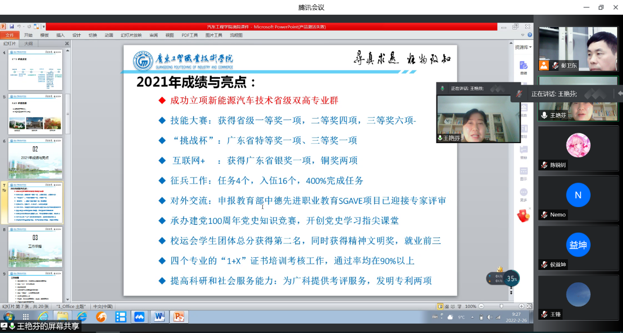 2022年2月26日上午,汽车工程学院通过腾讯会议召开新学期全体教职工大会。会议由学院党总支书记彭卫东主持,学校党委委员、副校长杜汉清及汽车工程学院全体教职工参加了会议。