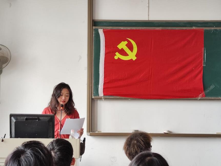 党员代表谢嘉驰发言 在会议的最后,陈莹颖老师再次强调了支部开展组织生活会的重要性和批评与自我批评的必要性,希望支部每位党员同志借此机会做深刻的自我反省分析;通过分析认识自己的不足,提高对党的认识,强化自身党性修养,增强“四个意识”、坚定“四个自信”、做到“两个维护”,争做“四讲四有”合格党员。