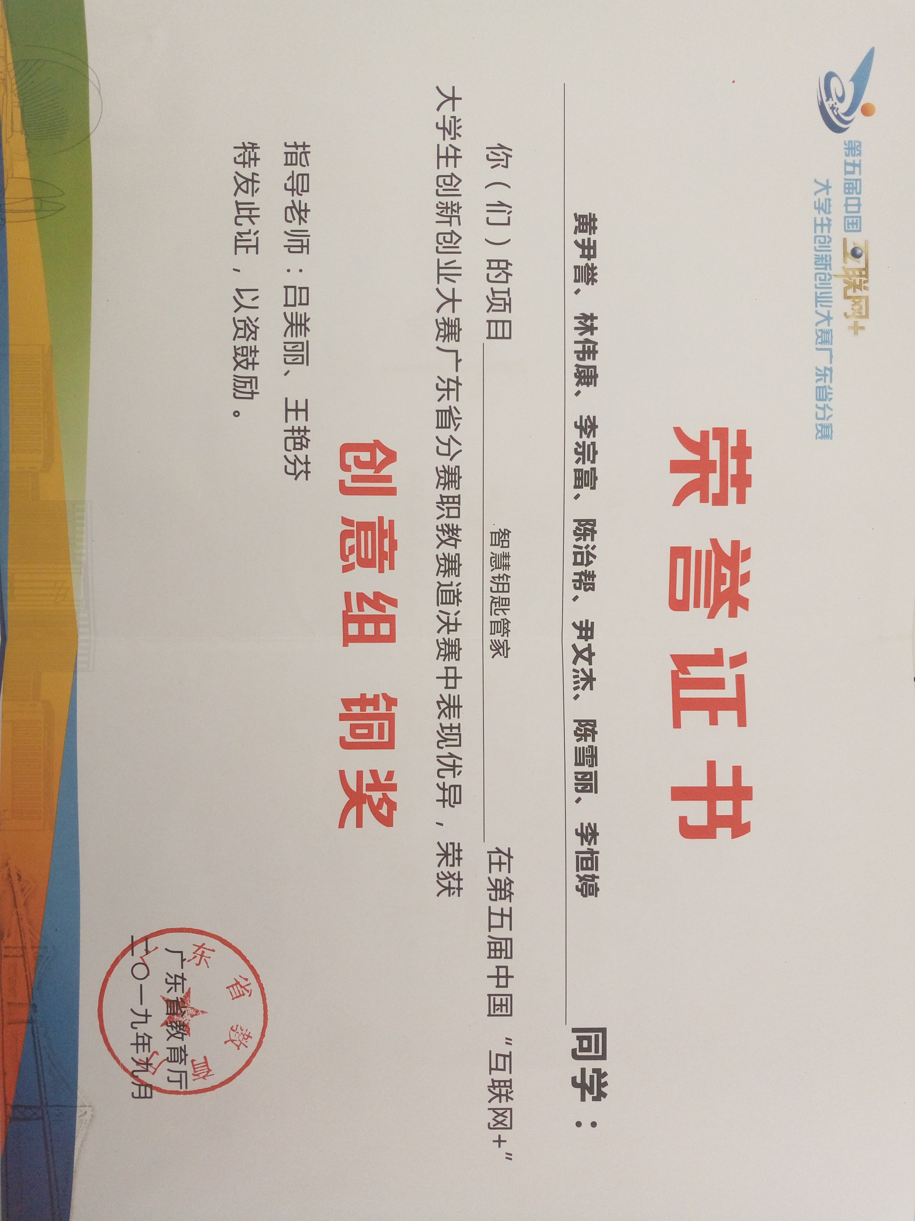 “互联网+”省赛获奖证书