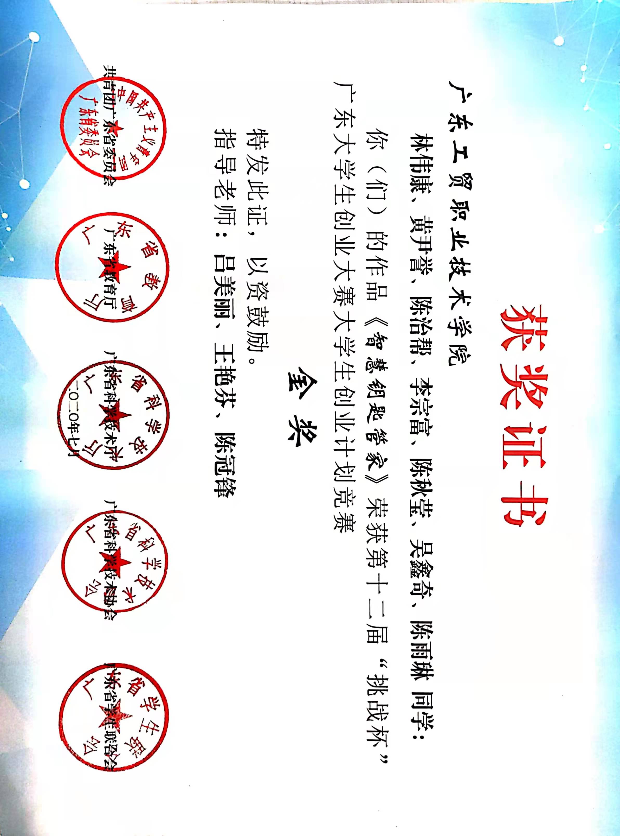 “挑战杯”省赛获奖证书