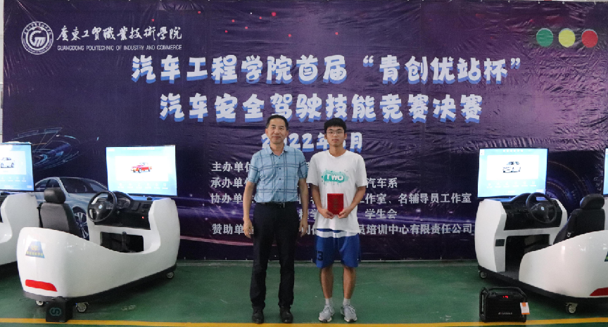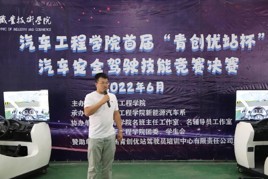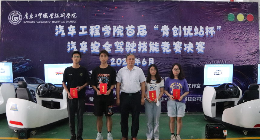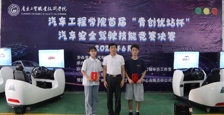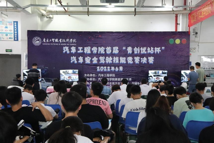 缤纷的六月,青春飞扬。为推进大学生汽车安全驾驶相关的教育教学工作,营造平安校园的良好氛围;6月21日下午,由汽车工程学院与青创优站驾驶有限公司联合主办、汽车工程学院名班主任工作室和名辅导员工作室协办的首届“青创优站杯”汽车安全驾驶技能竞赛总决赛在行知楼101举行。学校副校长杜汉清、汽车工程学院党总支书记彭卫东、党总支副书记欧敏、副院长潘梦鹞、新能源汽车技术系系主任王锋、新能源汽车技术专业带头人郇锐铁、广州青创优站驾驶培训中心有限责任公司总经理马坷槟、校园负责人蔡旺达、辅导员桂晶晶、詹琪琪、周名力以及21级学生代表参加活动。