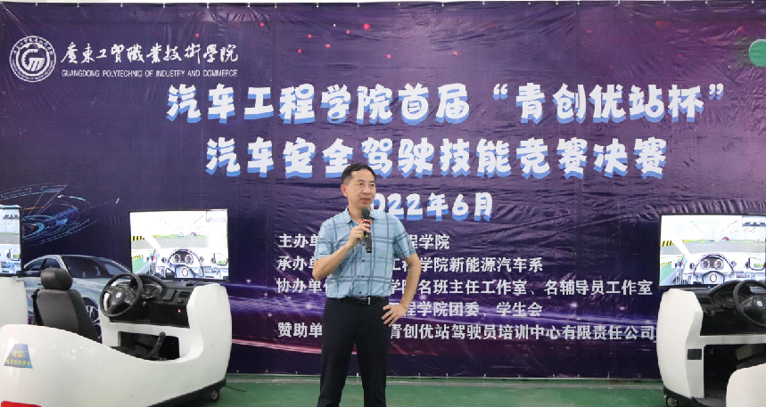 学校副校长杜汉清 紧接着,广州青创优站驾驶培训中心有限责任公司总经理马坷槟发言,此次活动不仅推动校企合作融合,也为日后的专业建设、人才培养、实习实训等方面打下基础,推动双方深入合作、共同发展。随后主持人宣布首届“青创优站杯”汽车安全驾驶技能竞赛正式开始。