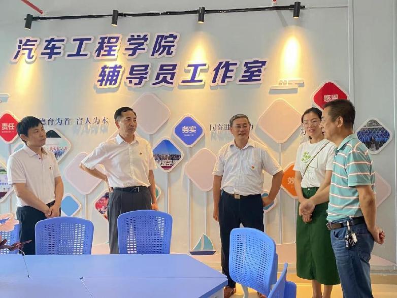 为推动班主任工作室及辅导员工作室实现内涵式发展,充分发挥示范引领作用,助力班主任及辅导员队伍建设,提升育人水平和育人成效;6月29日下午,学校副校长杜汉清在汽车工程学院党总支书记彭卫东、副院长潘梦鹞、新能源汽车系主任王锋、新能源汽车技术专业带头人郇锐铁及辅导员桂晶晶等老师的陪同下参观了我院班主任工作室以及辅导员工作室。