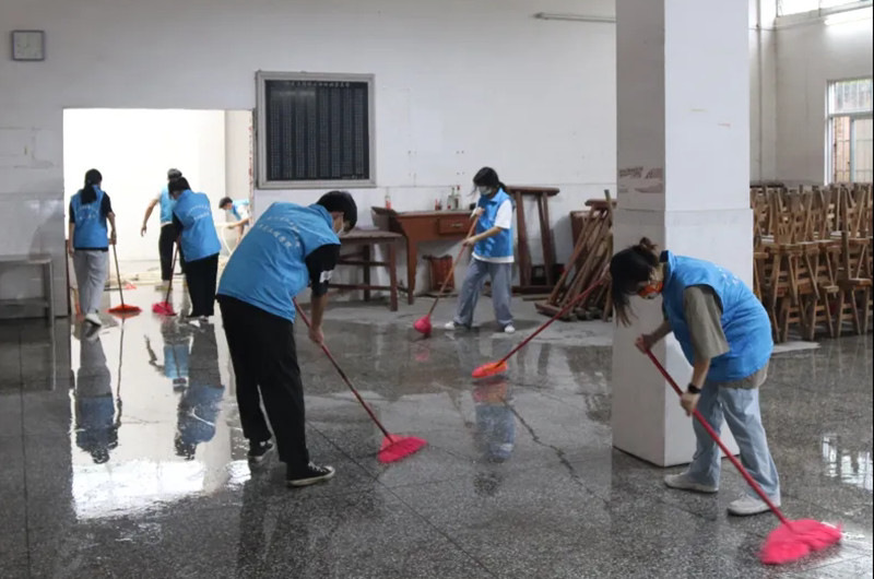 志愿者清洁文化中心 当天下午,在指导老师陈宏伟与三下乡队长林悦的带领下,志愿者们前往湴湖村文化活动中心开展清洁美化活动。在队长林悦的安排下,志愿者们有秩序的展开活动,深入到文化活动中心楼层的各个角落进行全面美化清洁。大家分工合作、干劲十足,文化活动中心环境得到了较大改善,为湴湖村的文明建设添砖加瓦。志愿者们都积极参与,不畏天气炎热、不怕脏、不觉累,充分展现了工贸学子良好的精神风貌,践行了社会主义核心价值观,提升了当代青年主人翁意识和社会责任感。