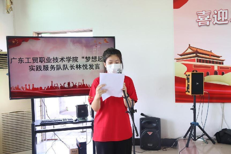 开幕式现场 仪式开始后,主持人介绍受邀本次当场的嘉宾,并以播放视频方式,带领全场观众一起回忆往昔的点点滴滴,一同跟随着梦想起航“三下乡”公益服务队的步伐,去领略这个队伍的精彩历程和特色成果。 紧接着,由湴湖村党委委员林玮昕致辞。她表示希望我们用实际行动服务群众,进一步解放思想,开拓创新,积极探索“三下乡”活动的新内容、新形式、新方法、新手段、新机制,不断提高活动的质量和深度,为小朋友带来新的课程体验,给村民实实在在的帮助和支持,让我们充分感受新形势、新思想给我们带来的新气息,新变化。同时也向广东工贸梦想起航社会实践服务队提以下几点要求:认真教导小朋友、密切关注孩子们的情况、在此次活动中学有所成,有所收获!