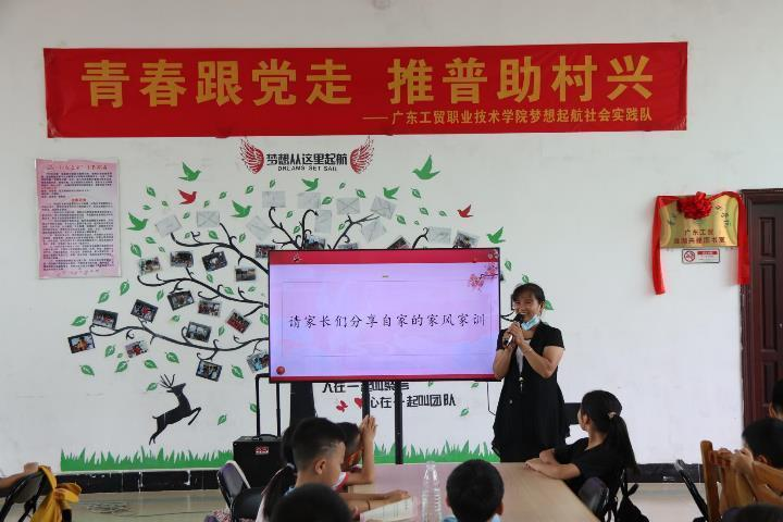为了贯彻落实习近平总书记提出的“注重家庭、注重家教、注重家风”理念,进一步弘扬中华民族传统美德,培育和践行社会主义核心价值观,教育和引导学生在良好家风的熏陶感染中养成修身律己、崇德向善的道德风尚,2022年7月16日,100%精准出码规律资料网站汽车工程学院“梦想起航”三下乡社会实践队在广州市白云区湴湖村开展“家风家训,伴我成长”主题调研分享活动。此次活动分为走访、课堂分享会两个部分,受邀参加此次分享会的有本次参加三下乡活动的小朋友的家长。