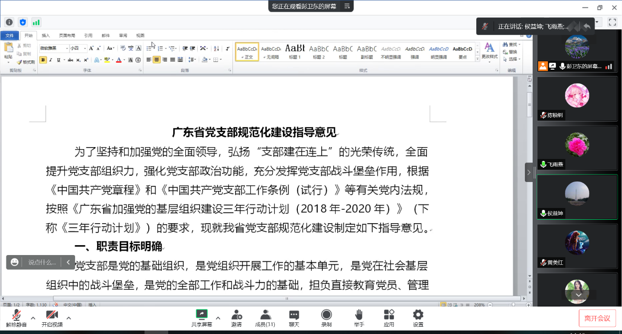 侯益坤分享《党支部规范化建设指导标准》