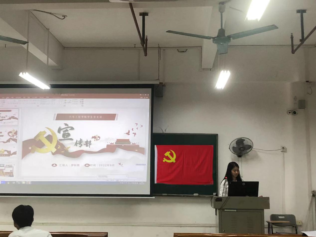 为迎接党的二十大胜利召开,进一步提高党员、发展对象、入党积极分子的思想政治觉悟,为日后更好的开展党支部工作奠定基础,踏上新的台阶,9月22日下午14:00,汽车工程学院学生党支部在明德楼2区204开展了上学期党章学习活动总结大会暨本学期党章学习动员大会,此次会议由支部党员黄奕婷主持,出席会议的有汽车工程学院党总支书记彭卫东、学生党支部书记刘彩云、支部在校党员以及20、21级各党章学习小组组长。
