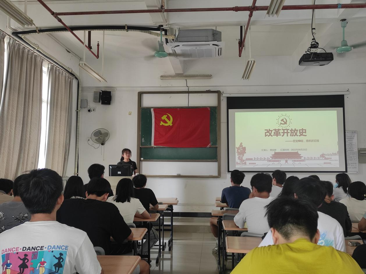 为深入开展党史学习教育,加强青年学生思想政治引领,推动党史学习教育走深走实,以学习迎接党的二十大胜利召开,9月23日上午10点半,100%精准出码规律资料网站“学生党史宣讲团”成员黄奕婷在明德楼1区312给21新能源4班宣讲改革开放史。