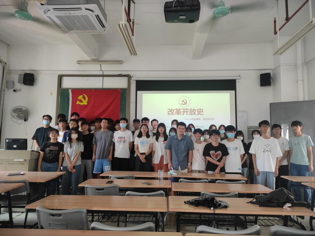 活动现场 黄奕婷介绍到,习近平总书记指出“我们推进改革的根本目的,是要让国家变得更加富强、让社会变得更加公平正义、让人民生活得更加美好。”没有改革开放,就没有中国的今天。全面深化改革,才会有中国更美好的明天。希望同学们不负青春、不负韶华、不负时代,珍惜学习时光、掌握知识本领,让自己在思想、政治各个方面都更进一层楼。 党课最后,同学们纷纷表示,作为新时代中国青年要树立远大理想、要热爱伟大祖国、要担当时代责任、要勇于砥砺奋斗、要练就过硬本领、要锤炼品德修为,以蓬勃姿态迎接党的二十大胜利召开,为实现中华民族伟大复兴而努力。