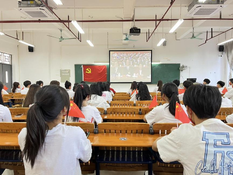 全体学生认真观看大会直播 党的二十大是在全党全国各族人民迈上全面建设社会主义现代化国家新征程、向第二个百年奋斗目标进军的关键时刻召开的一次十分重要的大会。大会的主题是:高举中国特色社会主义伟大旗帜,全面贯彻新时代中国特色社会主义思想,弘扬伟大建党精神,自信自强、守正创新,踔厉奋发、勇毅前行,为全面建设社会主义现代化国家、全面推进中华民族伟大复兴而团结奋斗。