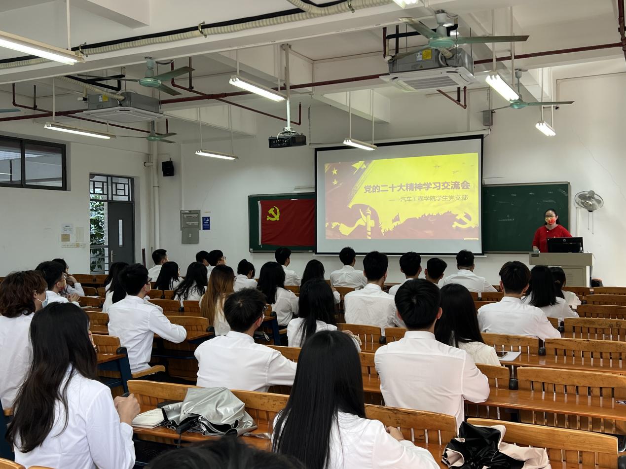 为庆祝党的二十大胜利召开,深入学习党的二十大精神,提高同志们的党性修养,10月16日上午10点,汽车工程学院学生党支部在明德楼2区202教室开展党的二十大精神学习交流会。此次会议由学生党支部书记刘彩云主持,学院党总支书记彭卫东莅临指导,支部全体在校党员参与。