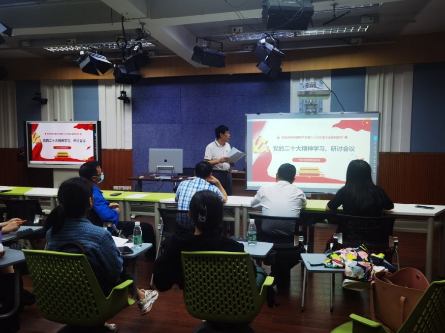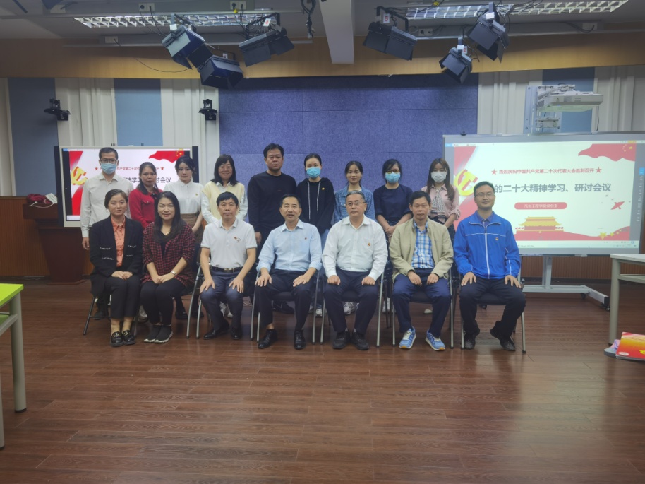10月18日下午,汽车工程学院在天河校区综合楼507召开政治学习会议,集中学习“习近平在中国共产党第二十次全国代表大会上的报告”,会议由党总支书记彭卫东主持,学校党委委员、副校长杜汉清出席会议,汽车工程学院全体教师党员参加了此次会议。