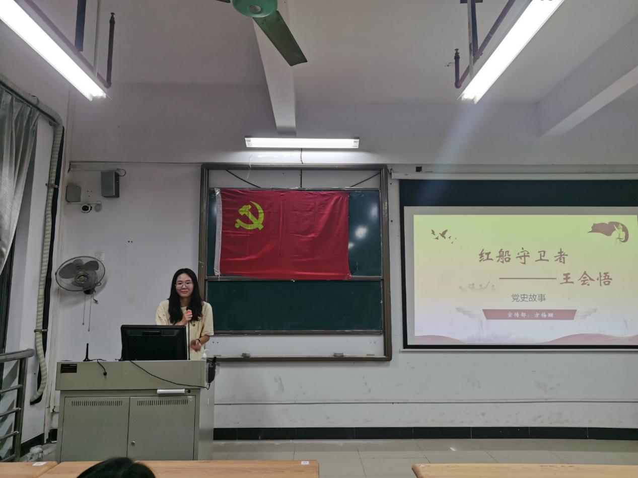 学习分享环节 在学习会分享环节中,宣传部和志愿者部给我们分享了红船守卫者—王会悟同志的事迹以及井冈山精神内容的讲解。党的“一大”顺利召开和闭幕离不开王会悟同志的组织与策划,而与之应运而成的“红船精神”更是为后续党的革命建设、井冈山精神等伟大革命精神的涌现奠定了基础,呼吁人民群众要不辱使命,砥砺前行,结合时代发展和社会主义现代化建设的新实践,大力弘扬井冈山精神等伟大革命精神并不断赋予其新内涵,使之放射出更加璀璨的光芒。