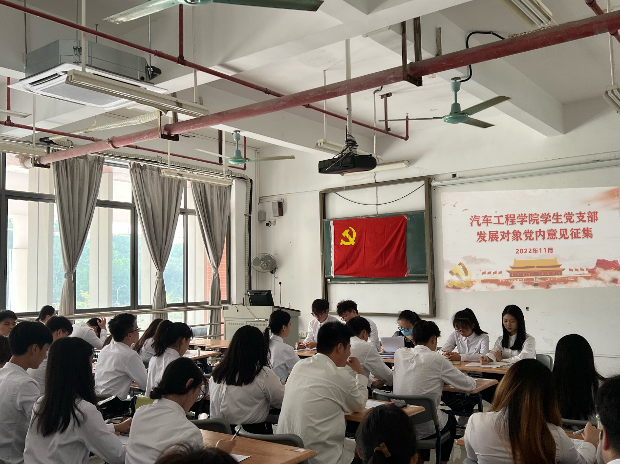 汽车工程学院学生党支部于2022年11月19日下午2点在明德楼1-311召开了关于本次发展党员的党内意见征集会议。本次会议由支部书记刘彩云主持,汽车工程学院学生党支部全体在校党员参与。