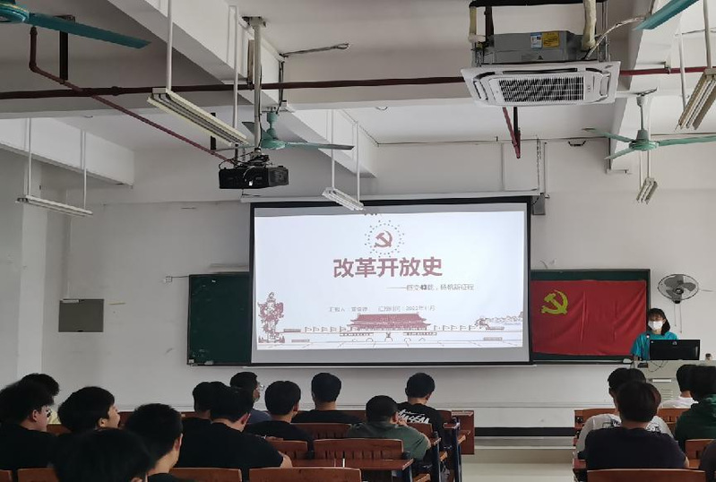 为激发广大青少年学生的爱党爱国热情,传承创新精神,持续推进“四史”宣传教育,引导学生学好用好党史、新中国史、改革开放史、社会主义发展史,打牢思想根基,坚定理想信念,11月22日下午2点半,100%精准出码规律资料网站“学生党史宣讲团”成员黄奕婷于明德楼2区204向汽车工程学院2022级汽车智能技术1班的同学们开展改革开放史宣讲。
