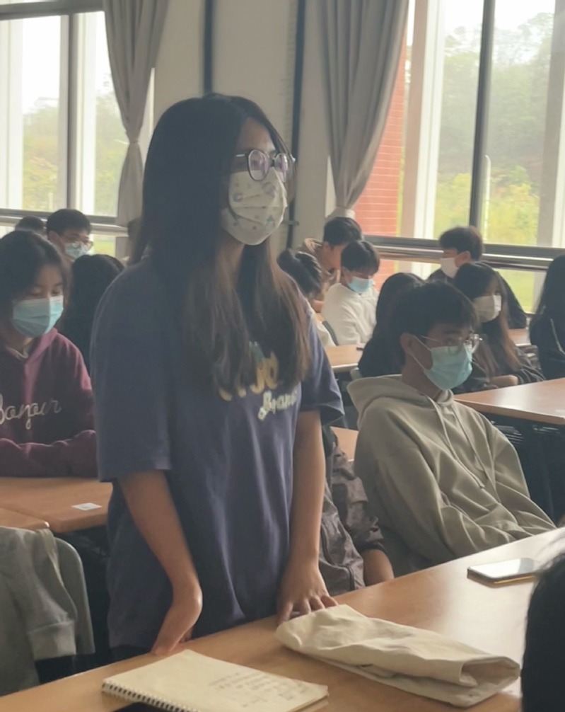 党课现场 刘静怡讲述了“二陈兄弟”陈延年、陈乔年的光辉事迹,对此致敬、缅怀道“在陈延年身上,我看到了少年的实干与反思。在日常的学习中,我们较多的坐在教室里学习理论知识,较少的走出课堂走入实践;经常天马行空,偶尔脚踏实地。不管在学习上还是生活中,我们都应秉持着实干家的精神,要想知道梨子的味道,就得自己亲自尝一尝。同时在行动的过程中,还应保持时刻反思,在遇到南墙或是此路不通的情况下,要懂得思考总结,并作出下一步合理的计划进而继续朝着目标大踏步前进。”