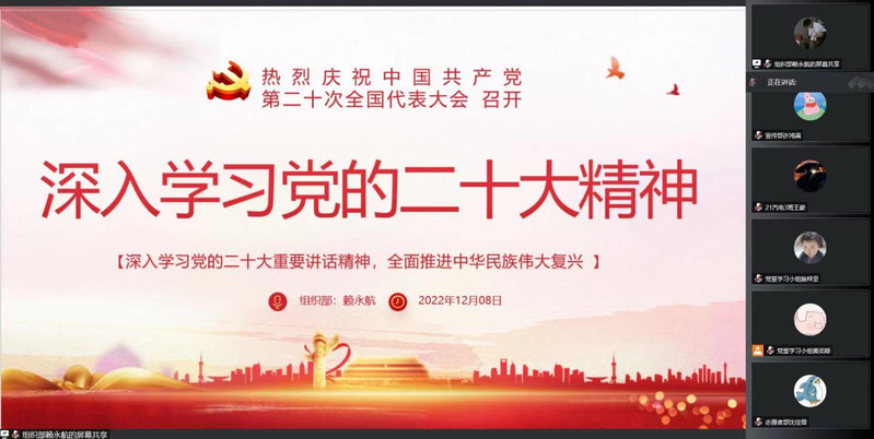 为进一步深入学习贯彻党的二十大精神,12月8日下午,汽车工程学院学生党支部开展线上学习分享会,汽车工程学院学生党支部书记刘彩云和全体在校党员、发展对象共同参与此次学习分享会,会议由支部党员黄奕婷主持。
